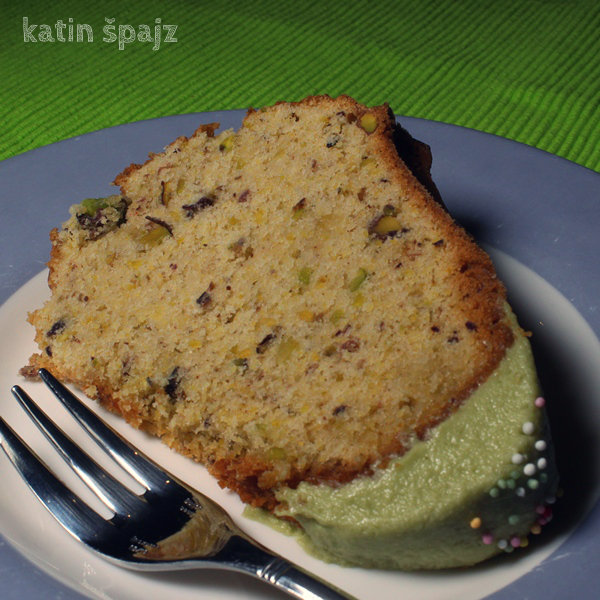 This cake with pistachios is one of the cakes that I made for the sweet sixteenth birthday of my youngest daughter. As our Christmas is a week after New Year's Eve, we are usually tired of eating when that day comes. So, this kind of cake is so appropriate for that celebration, too. Simple and graceful, with the touch of the traditional ingredient in the festive edition. So good with the tea with friends and family. That is the reason I am sharing this post with the BundtBakers - the group of bundt cake fans for the event Sneha created: Make the bundt fit for the holidays!